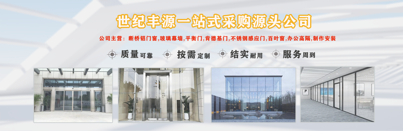天津世紀豐源門窗有限公司從事斷橋鋁門窗,玻璃幕墻,平衡門,肯德基門,不銹鋼感應門,百葉窗,辦公高隔,制作安裝一站式訂制生產及配套服務等?! 」咀猿闪⒁詠恚冀K堅持以人才為本、誠信立業的經營原則,薈萃業界精英,成熟的技術、管理方法及企業經驗與國內企業的具體實際相結合,為企業供給各個方面的解決方案,使企業在激烈的市場競爭中始終堅持競爭力,實現企業快速、穩定地發展。 質量好、服務好、才能信譽好,公司已在諸多領域取得輝煌成績,愿意成為您可信賴的長期合作伙伴?! ∽屛覀償y手同行,共同實現“讓普通老百姓都用得上高端門窗”...